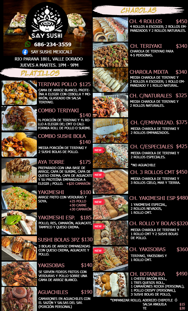 Say Sushi es una dark kitchen en Mexicali especializada en Sushi a Domicilio o para Llevar.